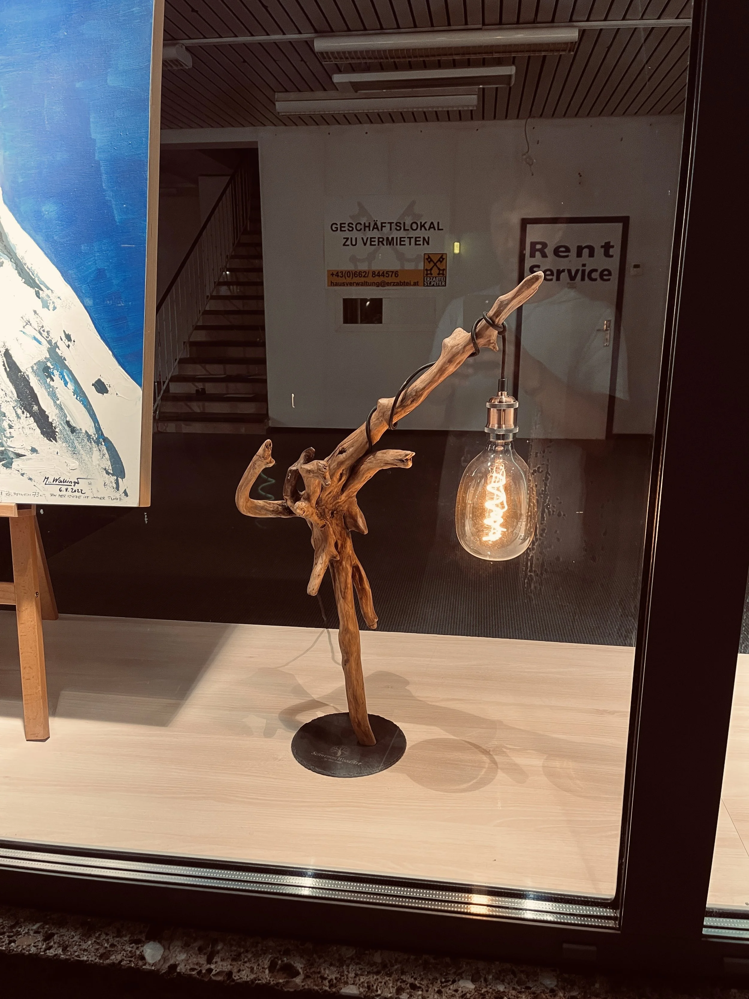 Hier entstehen einzigartige Lampen und Skulpturen aus echtem Schwemmholz - von der Natur geformt, von Hand vollendet. Jedes Stück erzählt seine eigene Geschichte: vom langen Weg über Flüsse und Seen, von Wind, Wasser und Zeit.